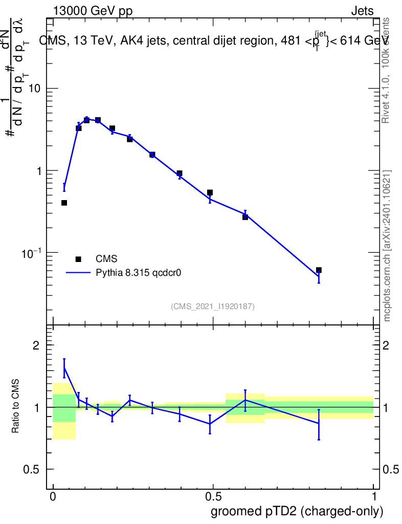 Lines: data, pythia8 8.315 qcdcr0 |