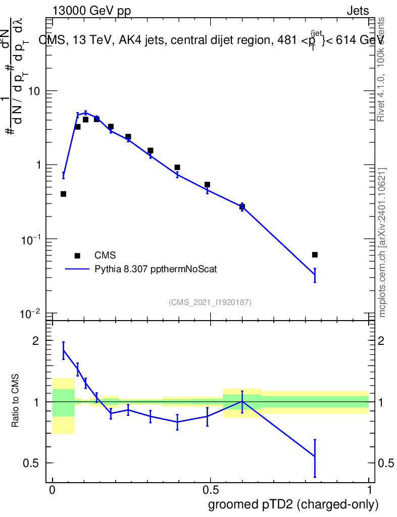 Lines: data, pythia8 8.307 ppthermNoScat |