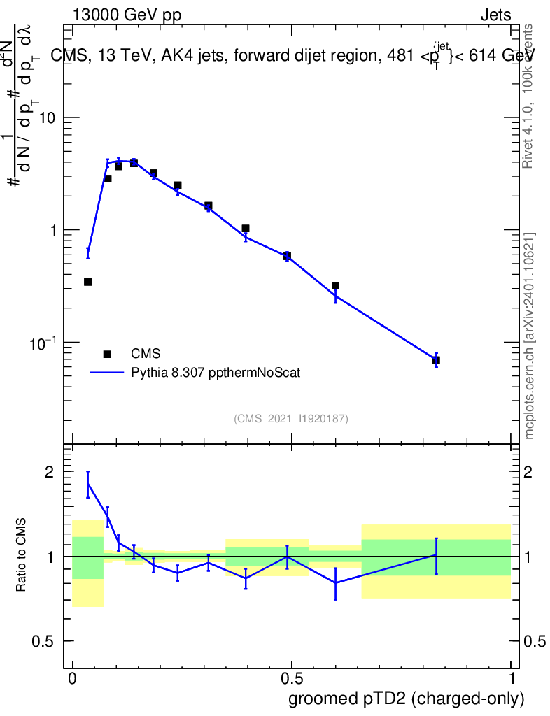 Lines: data, pythia8 8.307 ppthermNoScat |