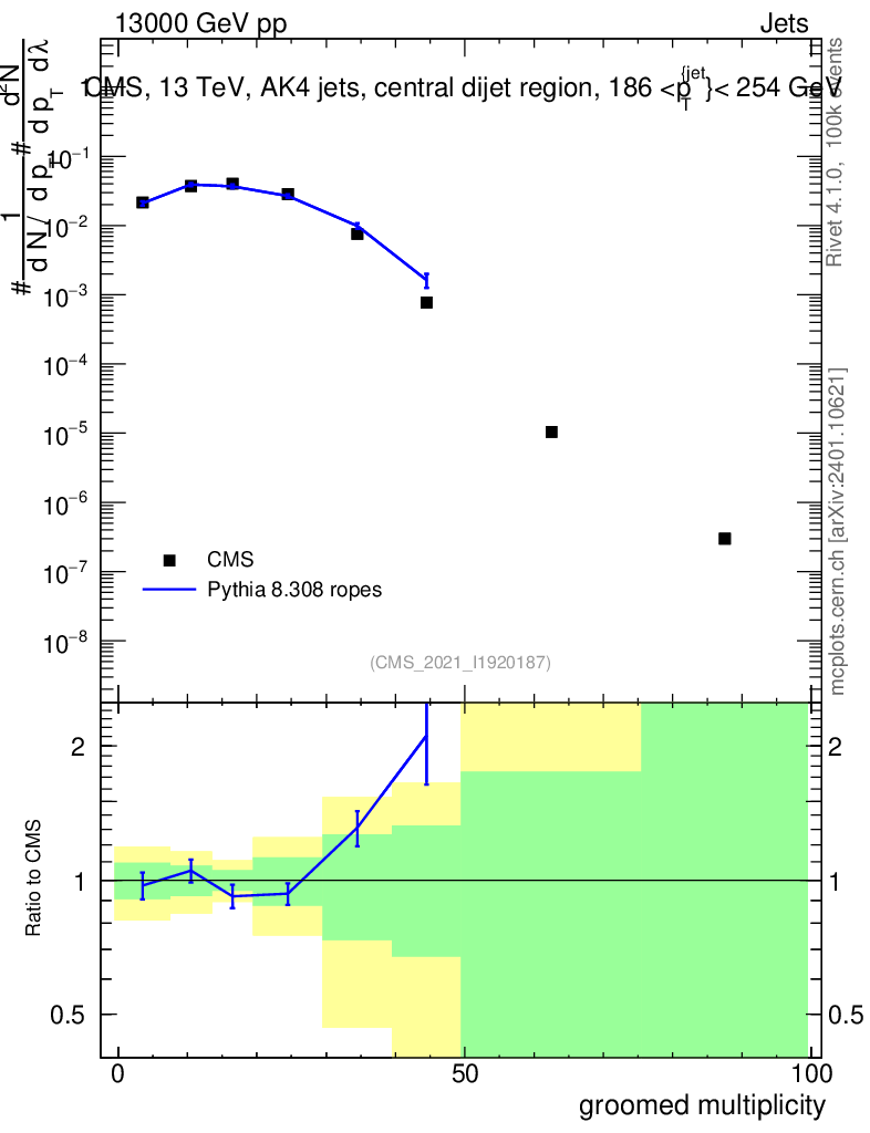 Lines: data, pythia8 8.308 ropes |