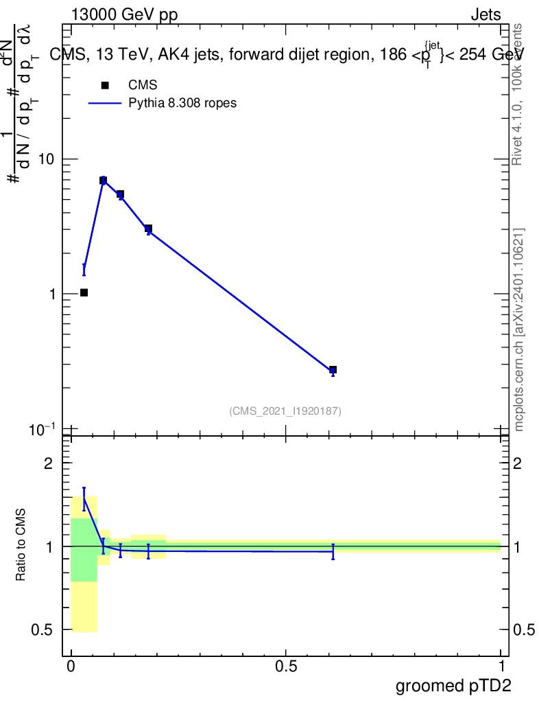 Lines: data, pythia8 8.308 ropes |