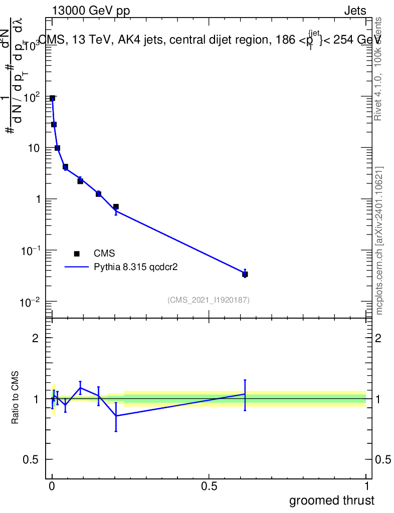 Lines: data, pythia8 8.315 qcdcr2 |