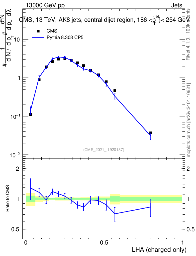 Lines: data, pythia8 8.308 CP5 |