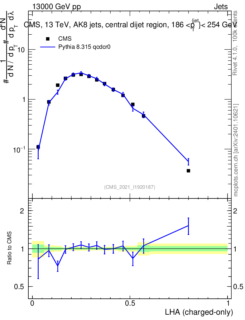 Lines: data, pythia8 8.315 qcdcr0 |