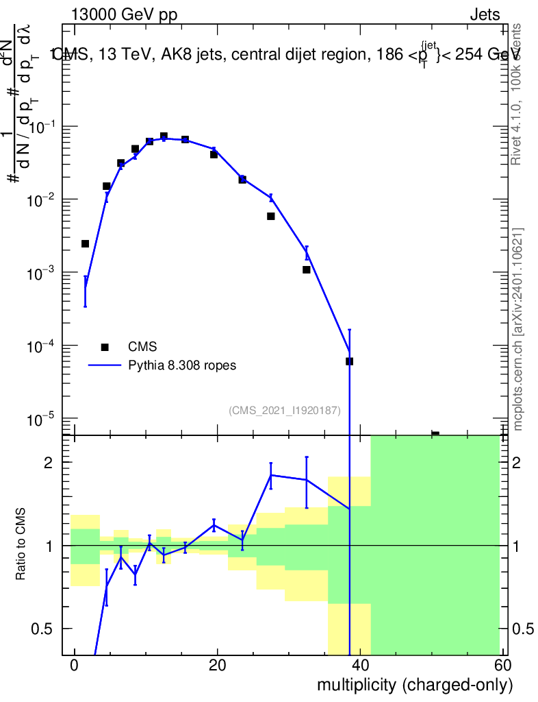 Lines: data, pythia8 8.308 ropes |