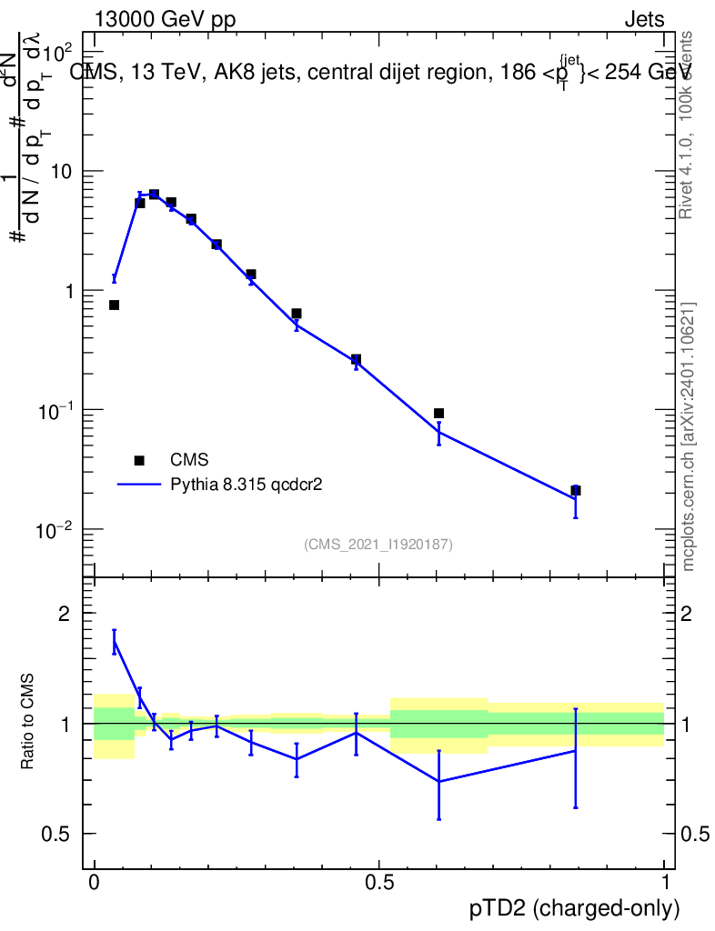 Lines: data, pythia8 8.315 qcdcr2 |