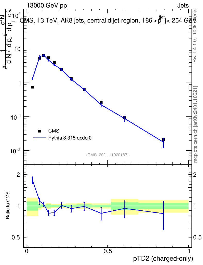 Lines: data, pythia8 8.315 qcdcr0 |