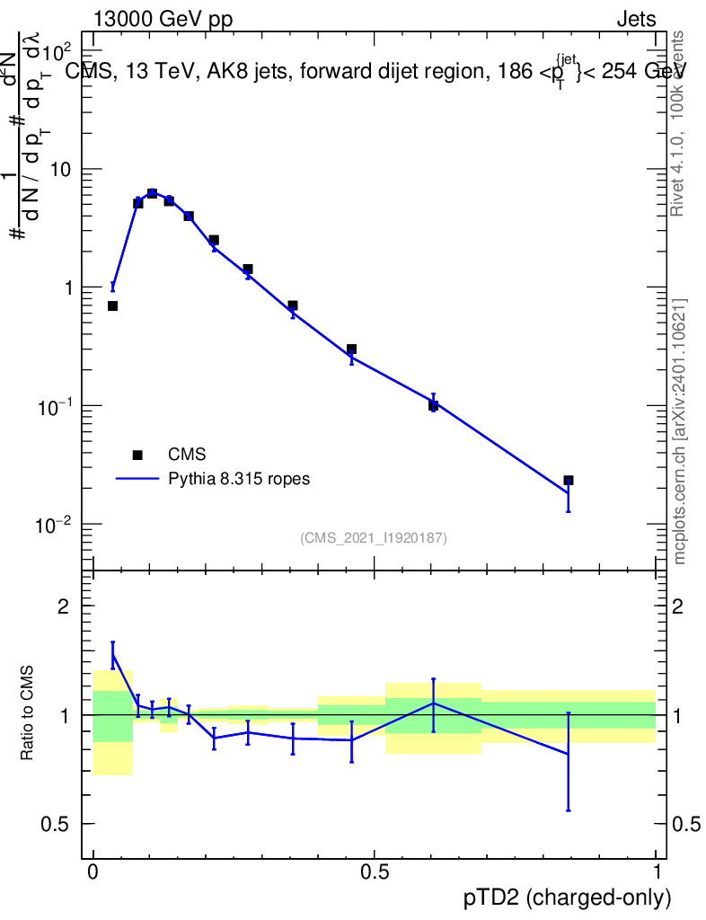 Lines: data, pythia8 8.315 ropes |