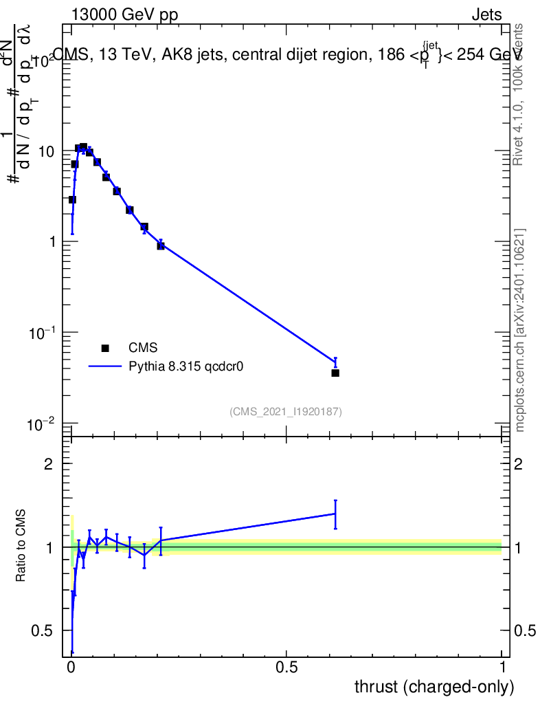 Lines: data, pythia8 8.315 qcdcr0 |