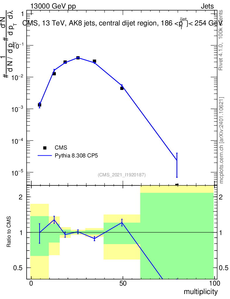 Lines: data, pythia8 8.308 CP5 |