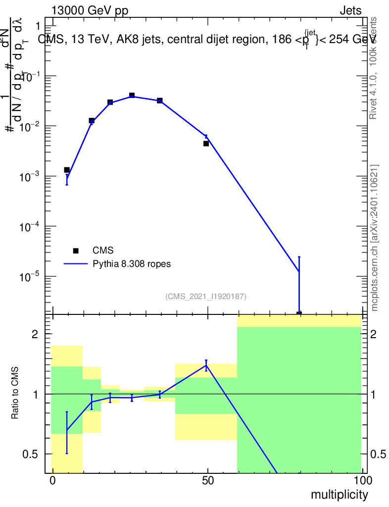Lines: data, pythia8 8.308 ropes |