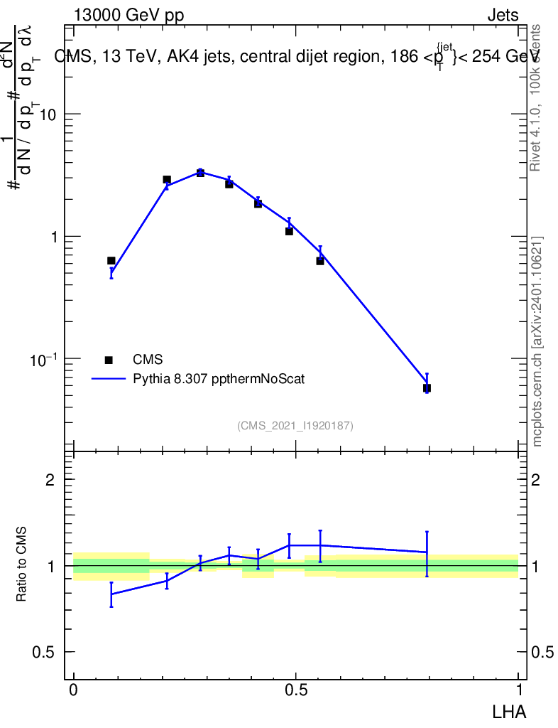 Lines: data, pythia8 8.307 ppthermNoScat |