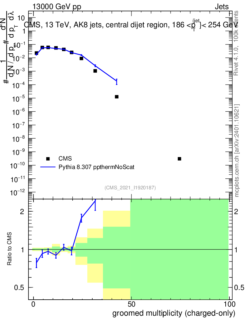 Lines: data, pythia8 8.307 ppthermNoScat |
