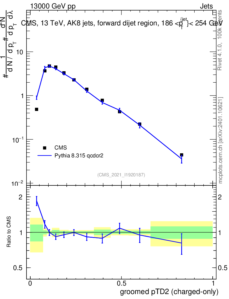 Lines: data, pythia8 8.315 qcdcr2 |