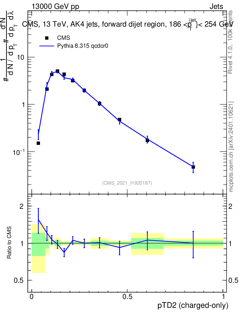 Lines: data, pythia8 8.315 qcdcr0 |