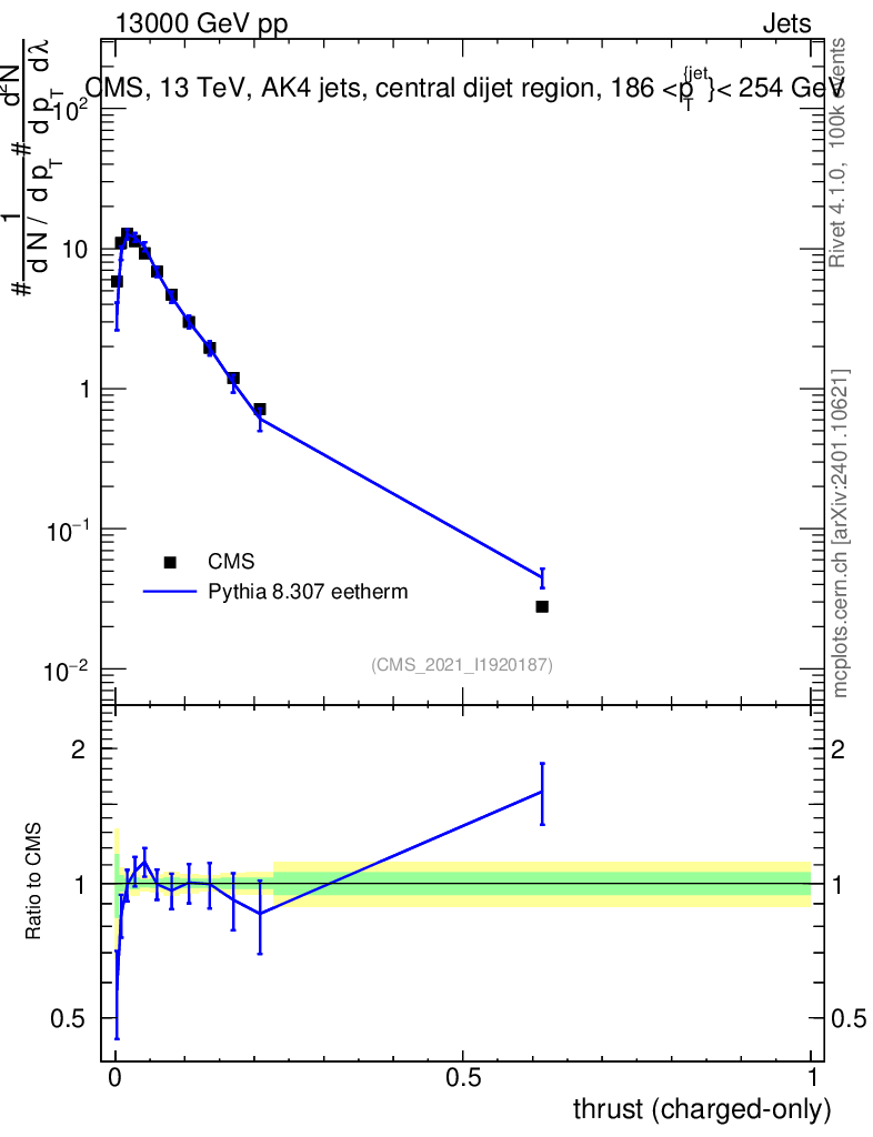 Lines: data, pythia8 8.307 eetherm |