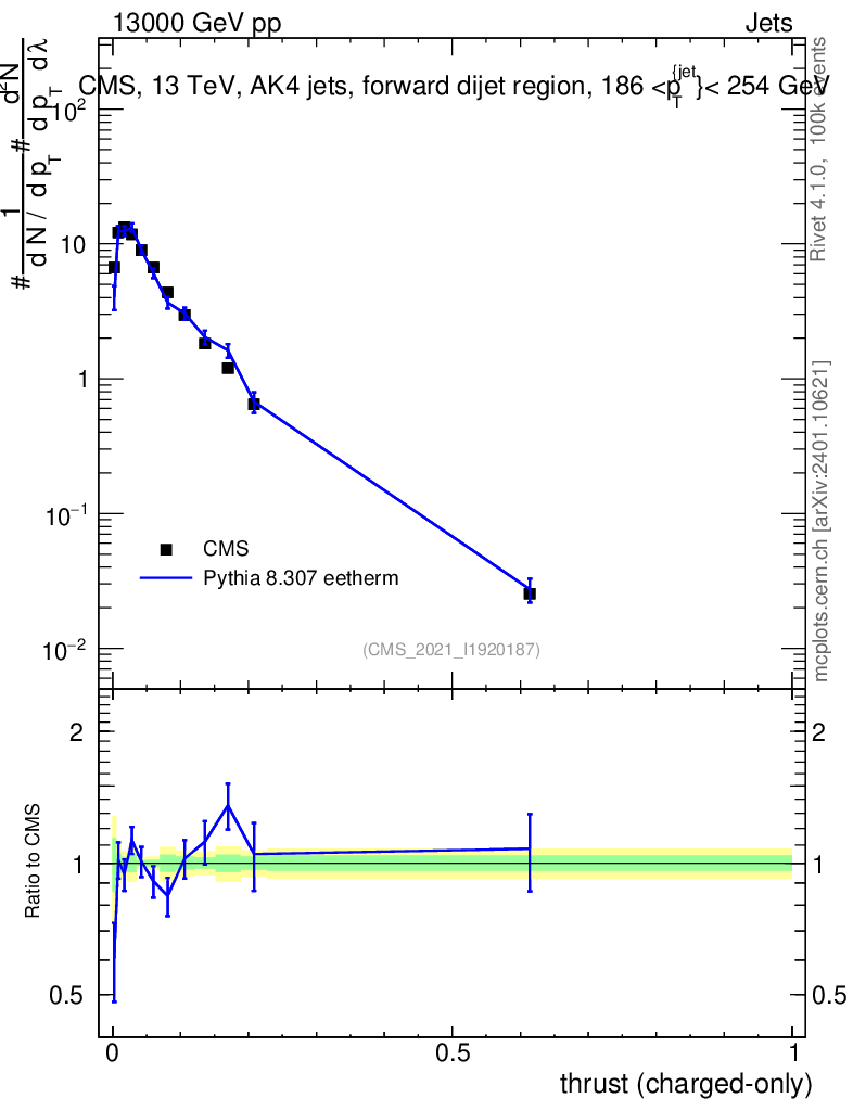 Lines: data, pythia8 8.307 eetherm |