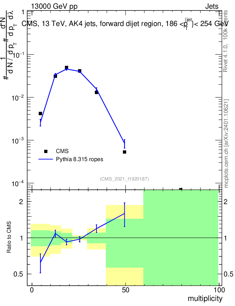 Lines: data, pythia8 8.315 ropes |