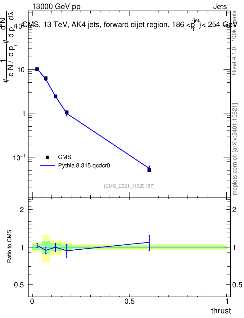 Lines: data, pythia8 8.315 qcdcr0 |