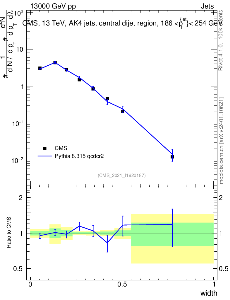 Lines: data, pythia8 8.315 qcdcr2 |