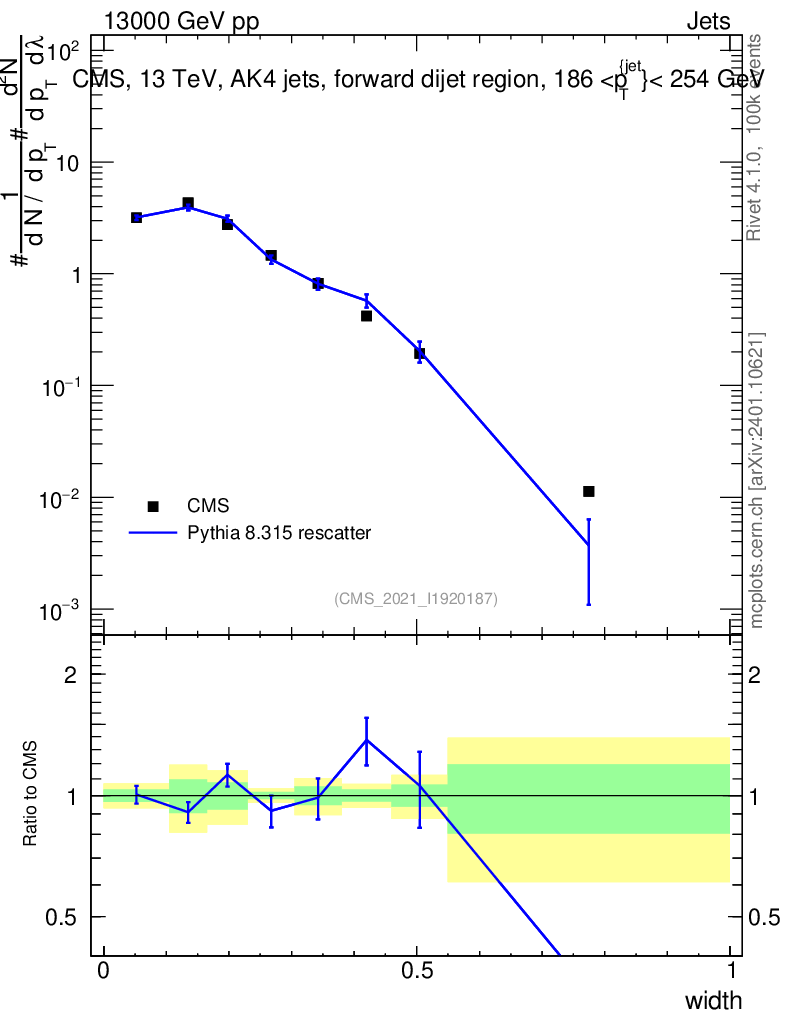 Lines: data, pythia8 8.315 rescatter |