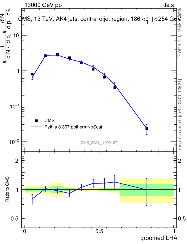 Lines: data, pythia8 8.307 ppthermNoScat |