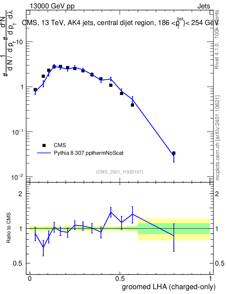 Lines: data, pythia8 8.307 ppthermNoScat |