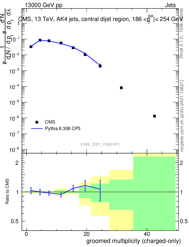Lines: data, pythia8 8.308 CP5 |