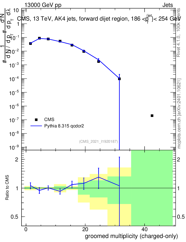 Lines: data, pythia8 8.315 qcdcr2 |