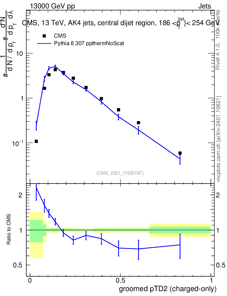 Lines: data, pythia8 8.307 ppthermNoScat |