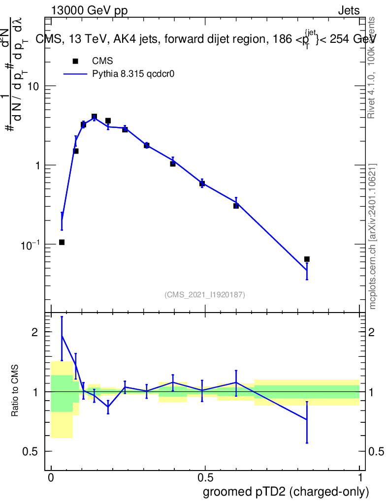 Lines: data, pythia8 8.315 qcdcr0 |