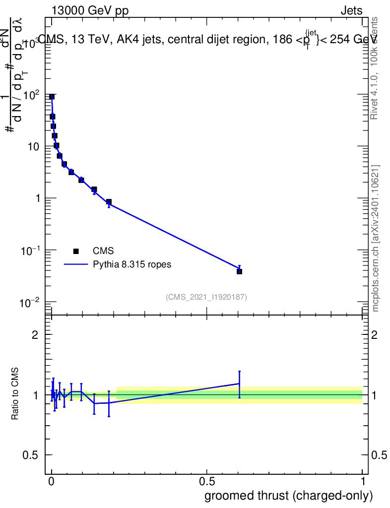 Lines: data, pythia8 8.315 ropes |
