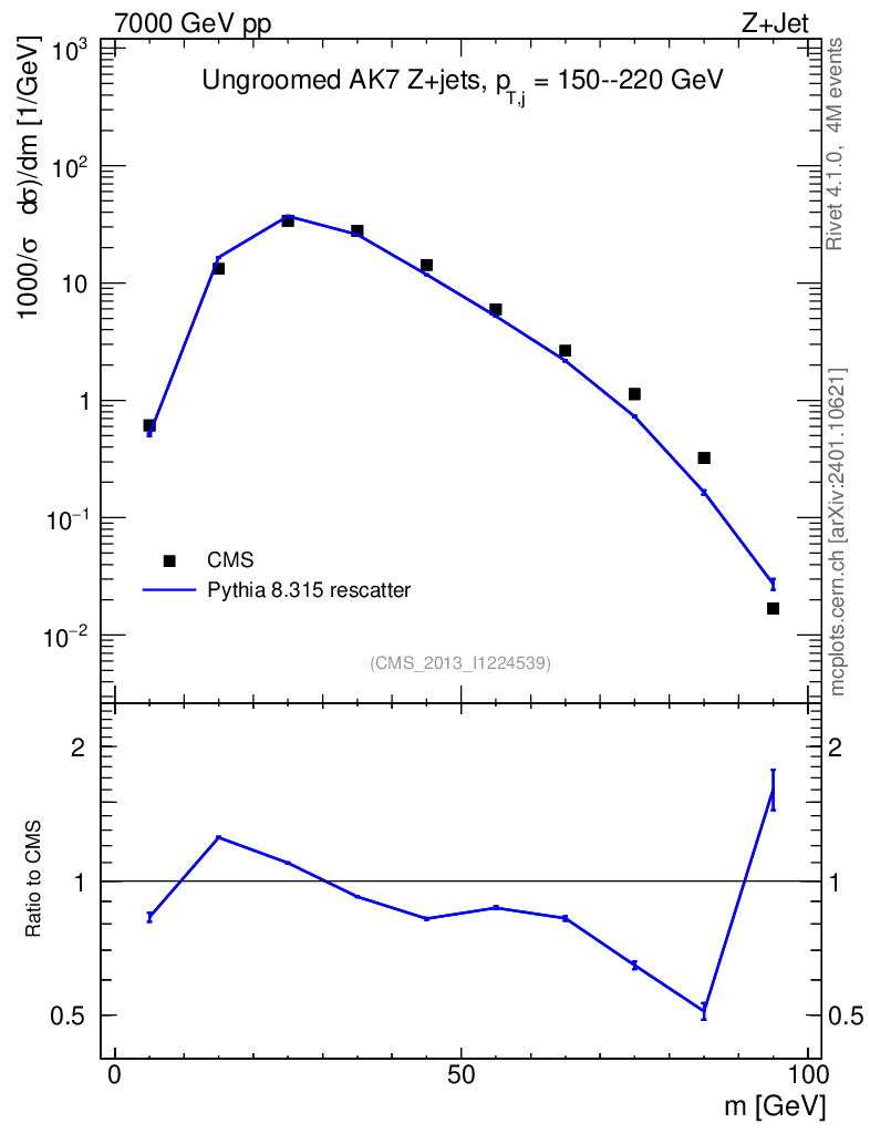 Lines: data, pythia8 8.315 rescatter |