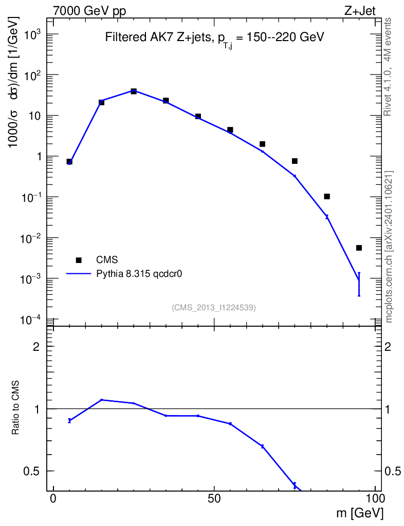Lines: data, pythia8 8.315 qcdcr0 |