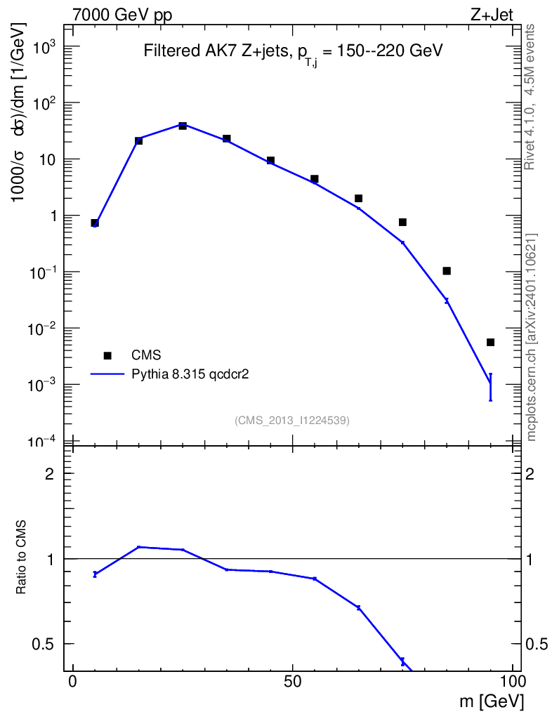 Lines: data, pythia8 8.315 qcdcr2 |