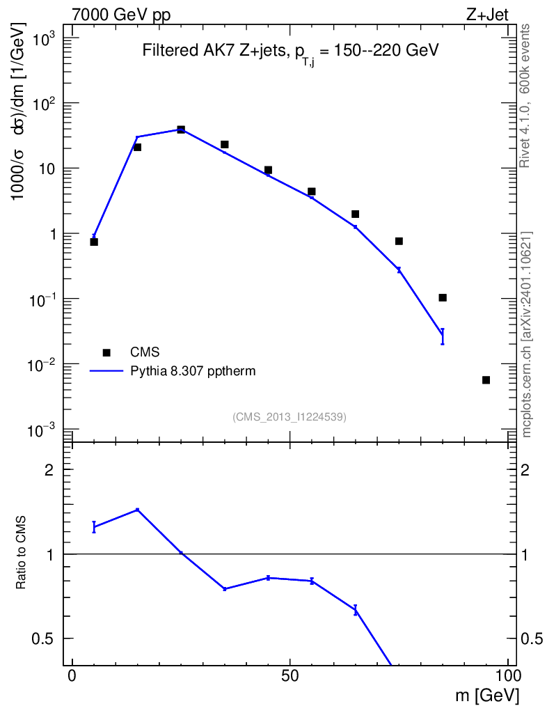 Lines: data, pythia8 8.307 pptherm |