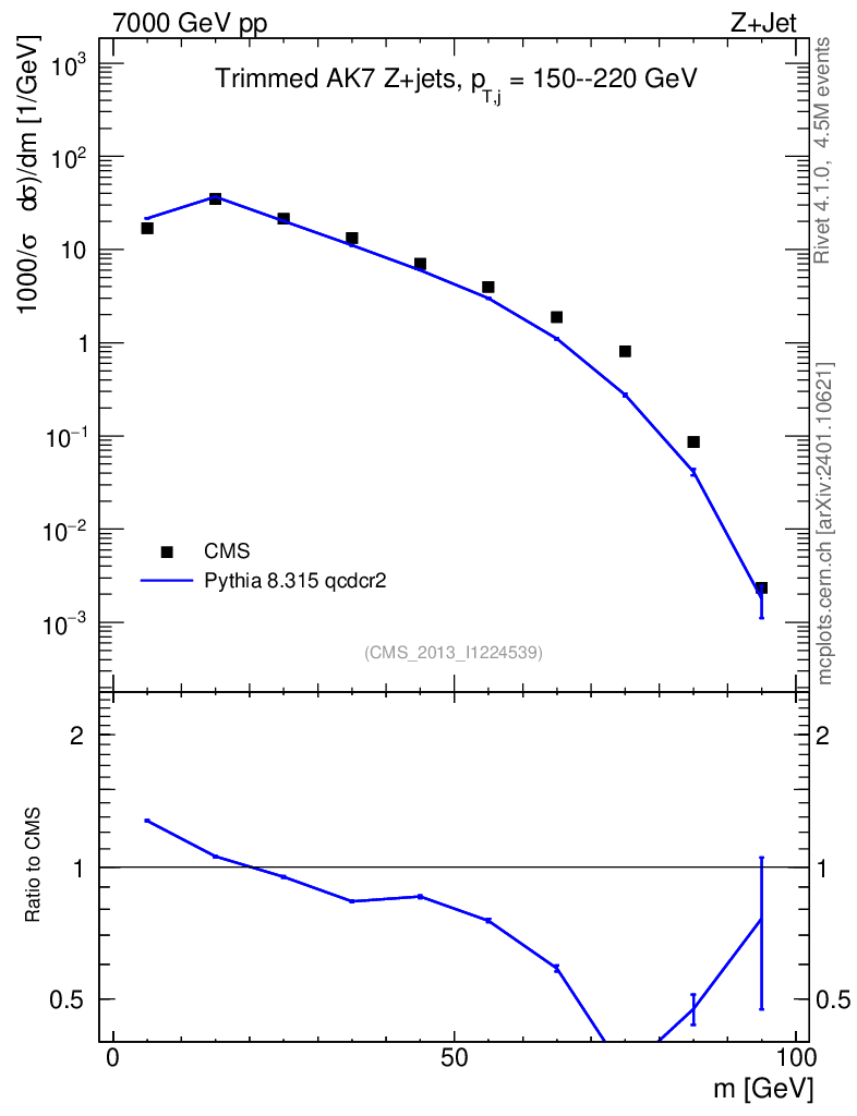 Lines: data, pythia8 8.315 qcdcr2 |