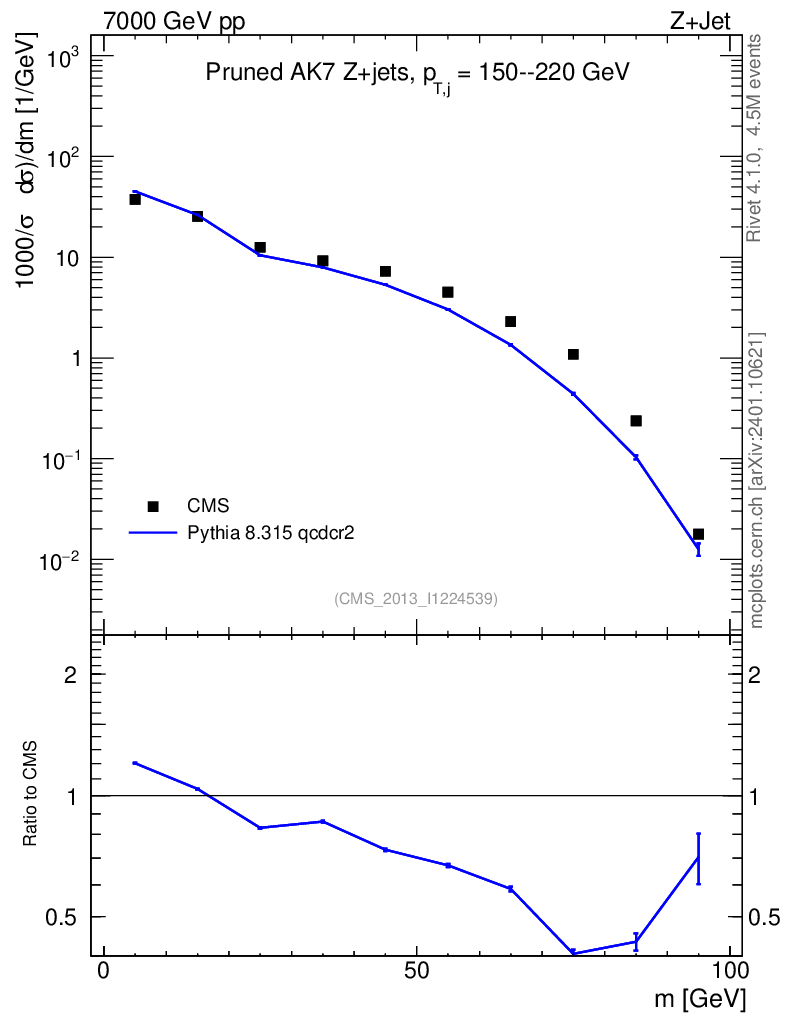 Lines: data, pythia8 8.315 qcdcr2 |