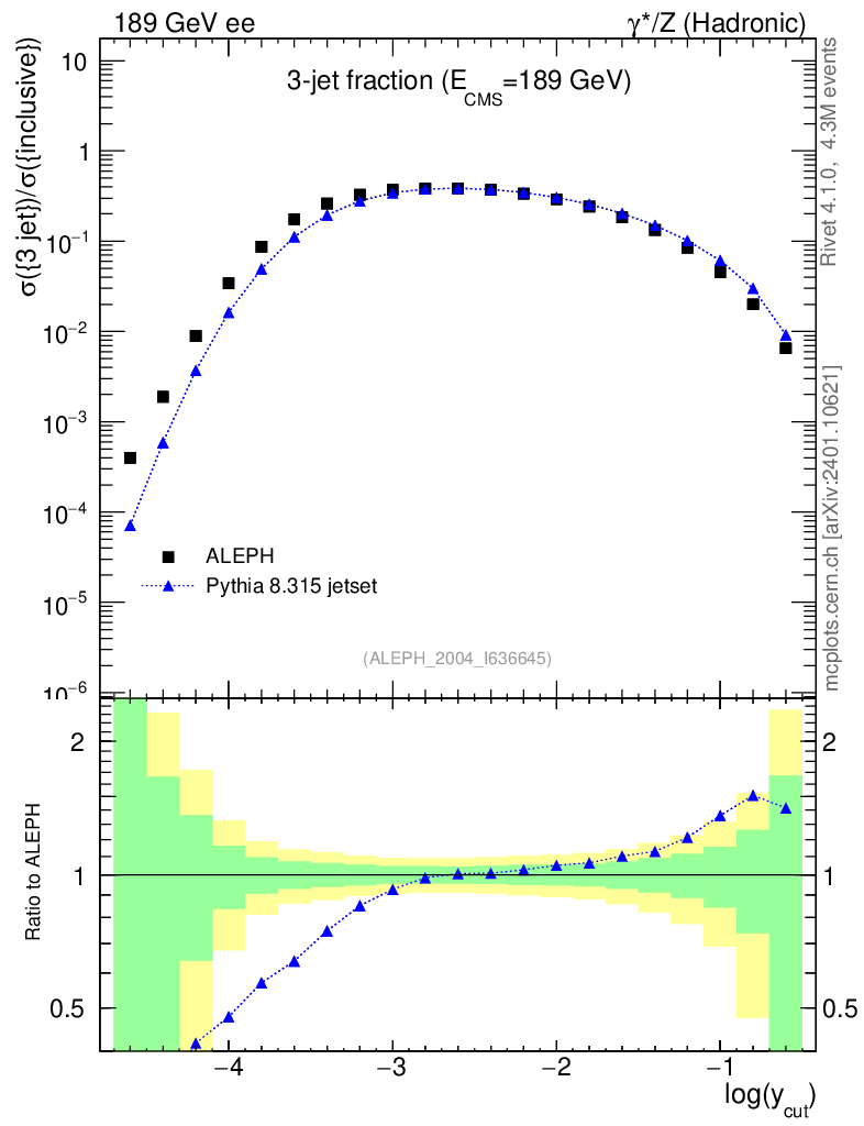 Lines: data, pythia8 8.315 jetset |