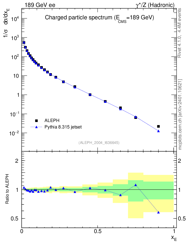 Lines: data, pythia8 8.315 jetset |
