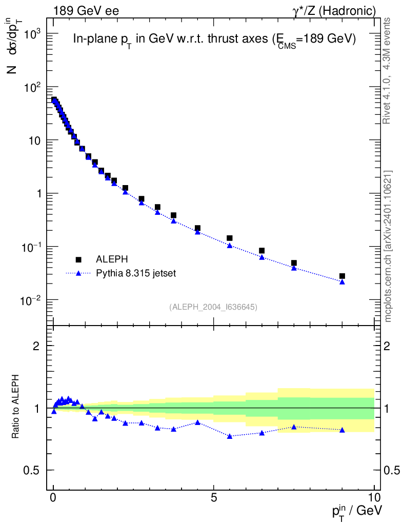Lines: data, pythia8 8.315 jetset |