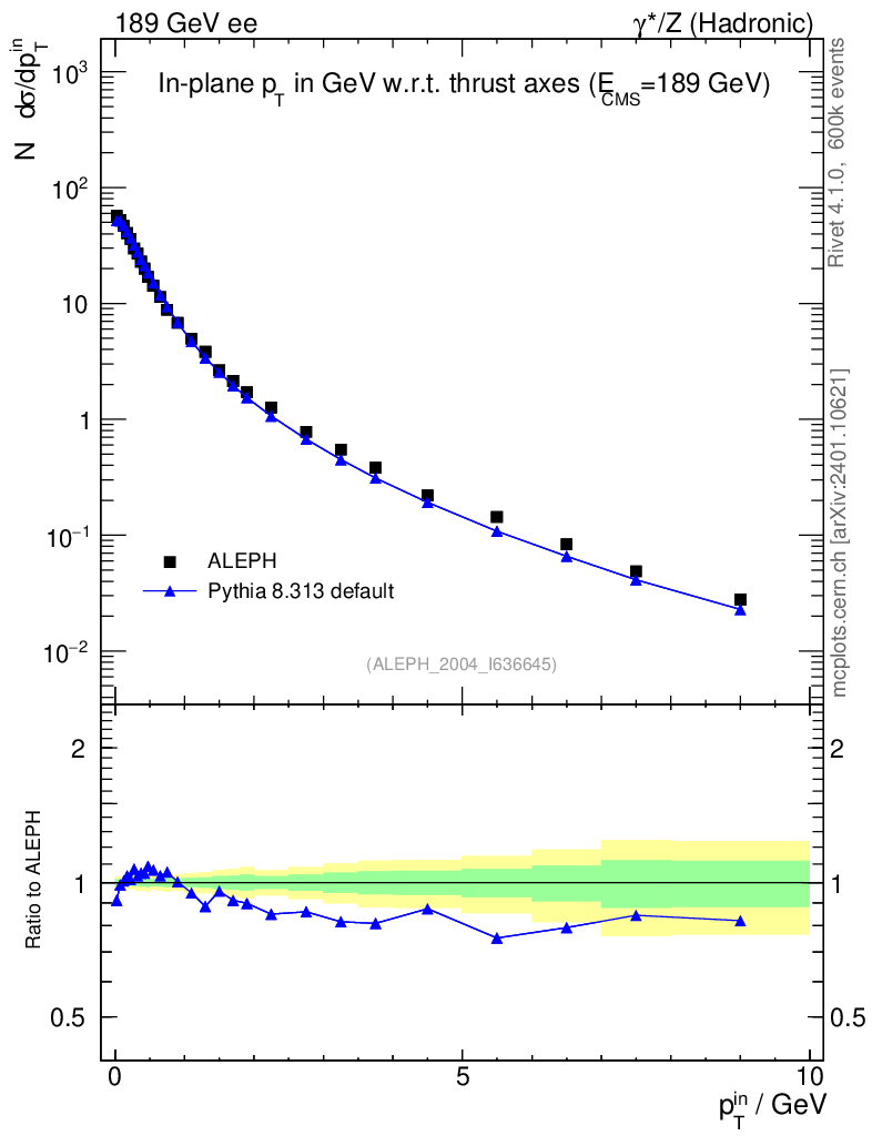 Lines: data, pythia8 8.313 default |