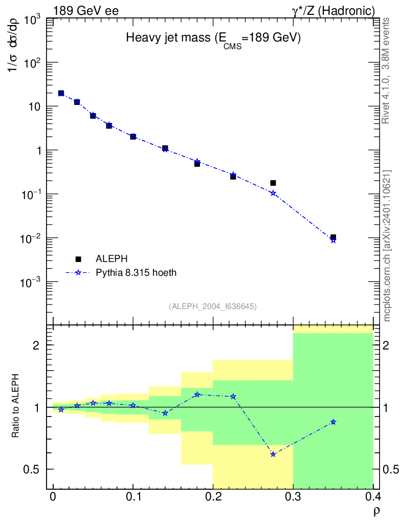 Lines: data, pythia8 8.315 hoeth |