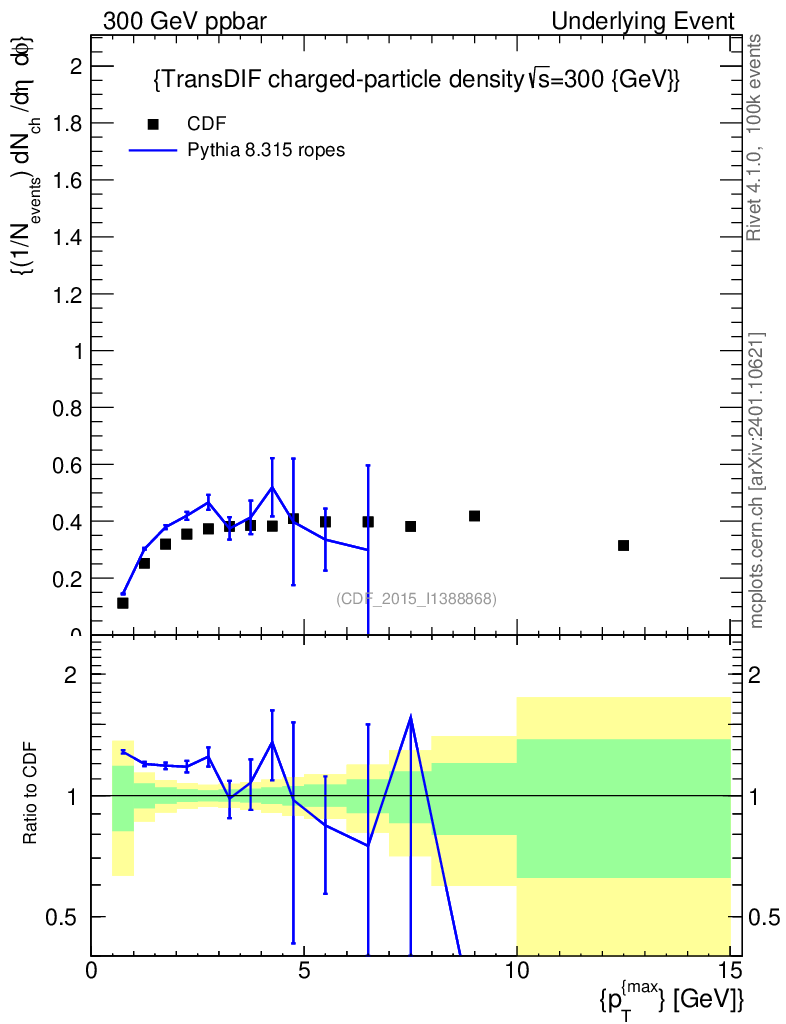 Lines: data, pythia8 8.315 ropes |