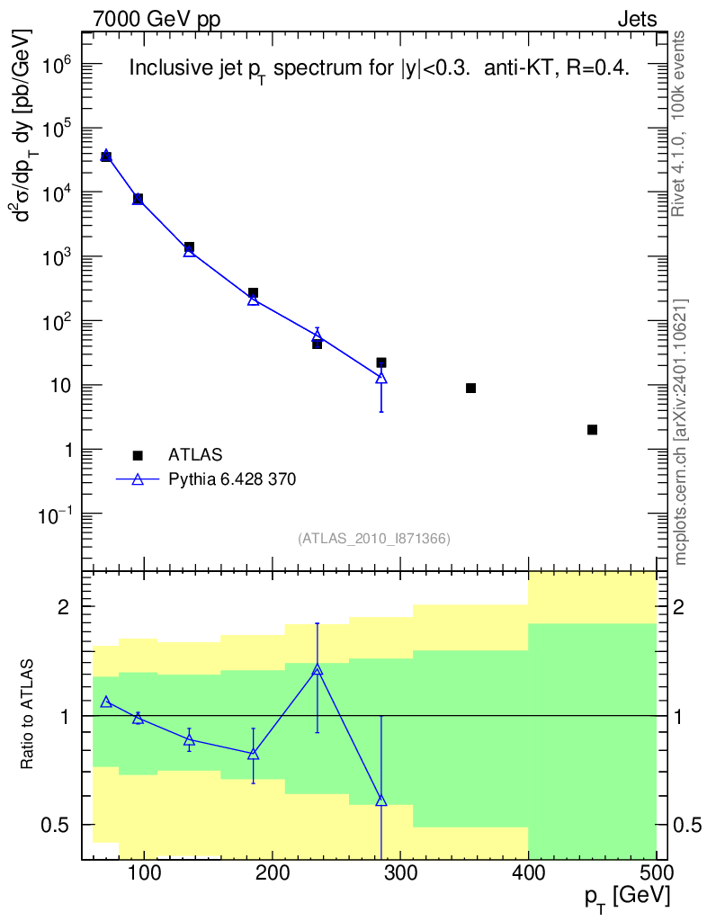 Lines: data, pythia6 6.428 370 |