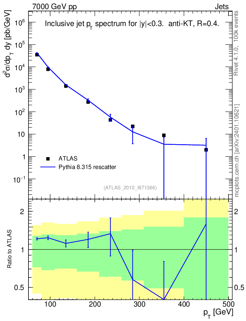 Lines: data, pythia8 8.315 rescatter |