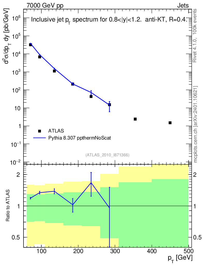 Lines: data, pythia8 8.307 ppthermNoScat |