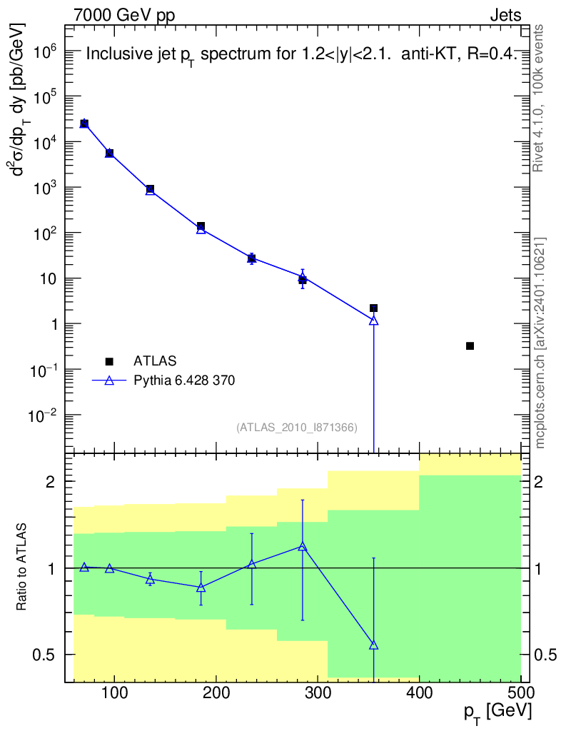 Lines: data, pythia6 6.428 370 |