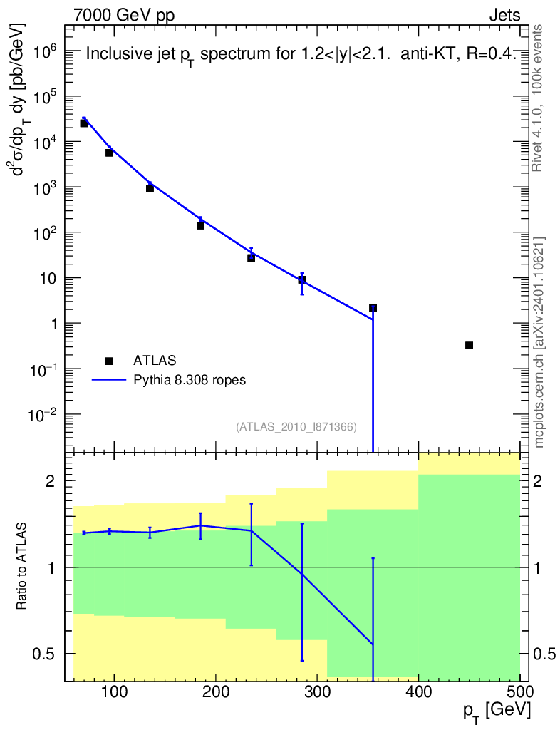 Lines: data, pythia8 8.308 ropes |