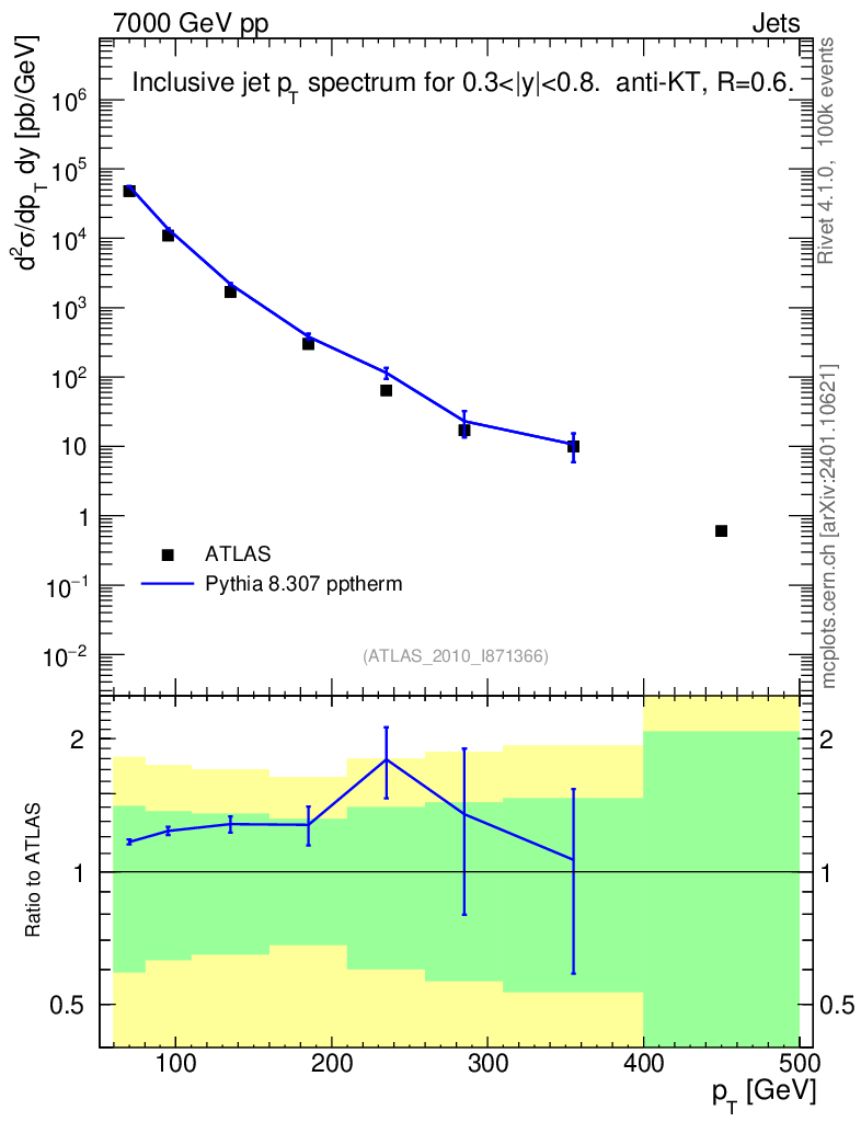 Lines: data, pythia8 8.307 pptherm |